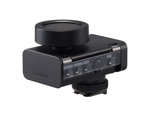 Panasonic has announced the DMW-DMS1, a microphone designed to attach to the digital hotshoe on recent Lumix cameras. It features support for 32-bit float recording on certain cameras and has a four-microphone array, allowing for multiple computational pickup patterns.
